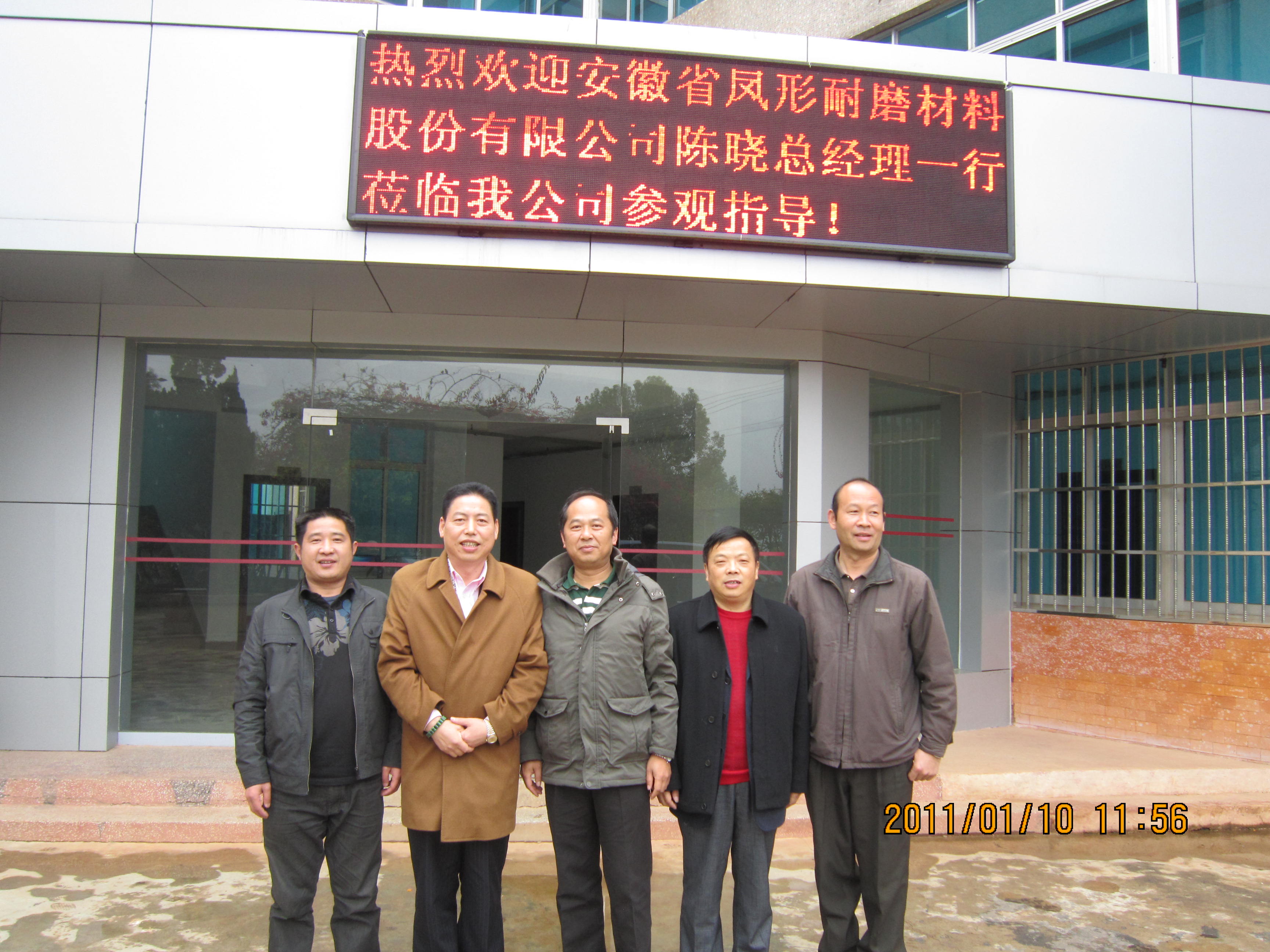 作者:管理員時(shí)間:2011-01-112011年1月10日,安徽省鳳形耐磨材料股份有限公司陳曉總經(jīng)理一行蒞臨我公司參考指導(dǎo),雙方就耐磨材料的生產(chǎn)、銷售進(jìn)行了深入的經(jīng)驗(yàn)交流。編輯:范太寶 校對(duì):張 文...