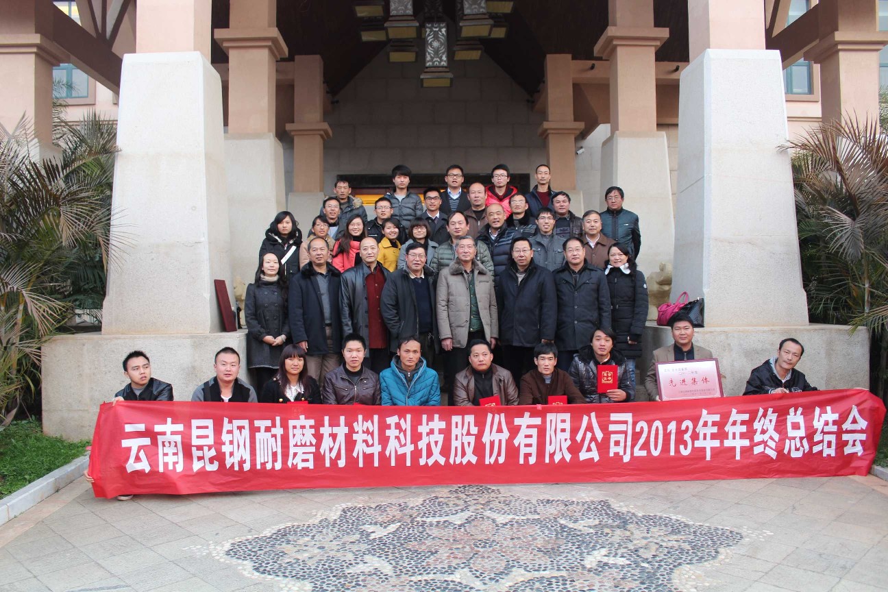 云南昆鋼耐磨材料科技股份有限公司2013年年終總結(jié)會(huì)于2013年12月21日在昆明海麗賓雅度假酒店成功召開。會(huì)上,優(yōu)秀員工代表發(fā)表了工作感言,公司部門負(fù)責(zé)人(或代表)、公司經(jīng)營班子成員分別作了2013年度工作總結(jié)匯報(bào)。公司領(lǐng)導(dǎo)及股東代表均作了重要講話,對(duì)公司2013年取得的成績(jī)給予了高度肯定,并對(duì)公司2014年即將開展的工作做出了重要指示。